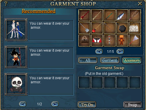 Here you can find all Accessories from the GarmentSwap NPC In market